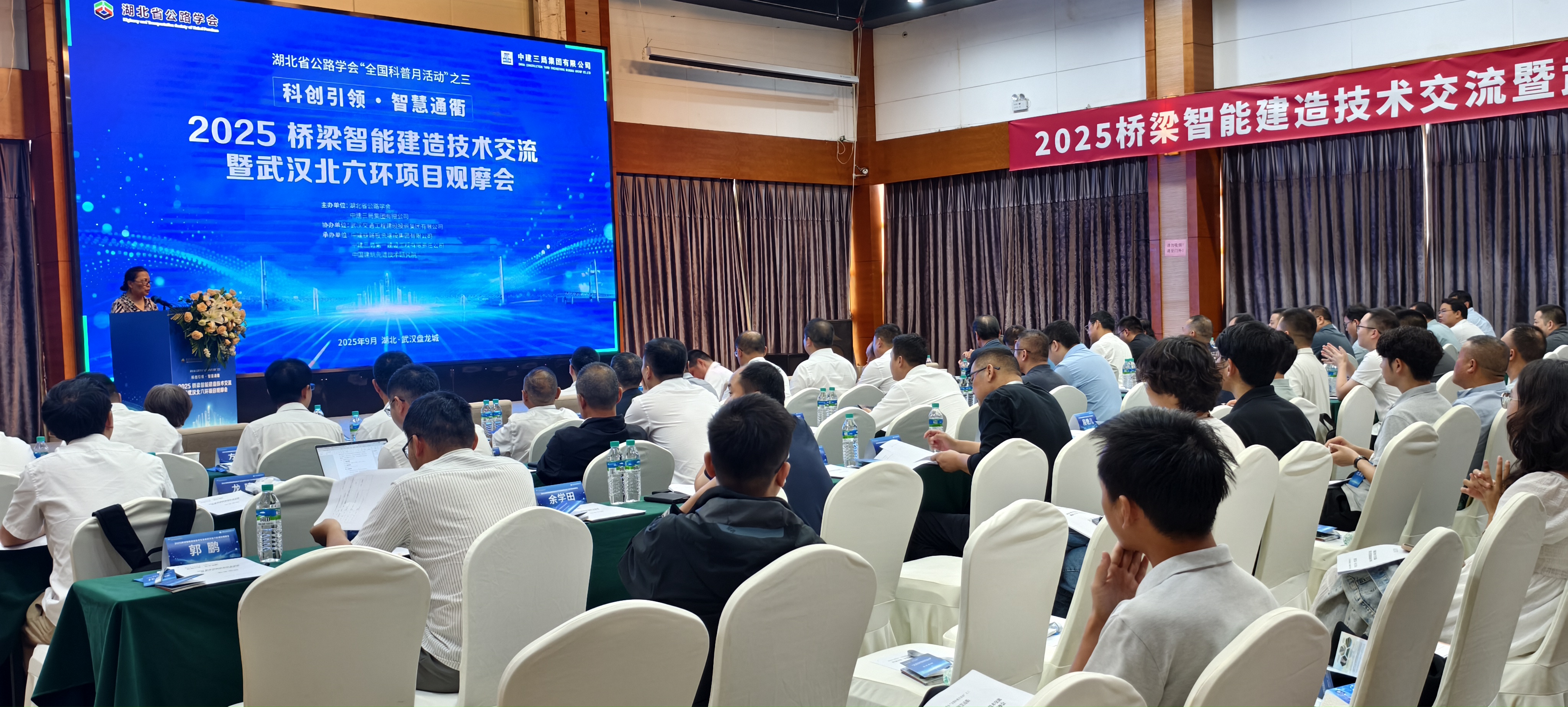 9月27日下午,“2025桥梁智能建造技术交流暨武汉北六环项目观摩会”在武汉盘龙城召开。本次活动为湖北公路学会“2025全国科普活动月”线下活动之二,与中建三局集团有限公司联合主办,武汉交通工程建设投资集团有限公司协办。来自全省各市州公路学会、武汉市各会员单位、相关高??蒲性核?/span>150余名科技工作者参加了活动,湖北省交通运输厅工程事务中心领导出席会议。
