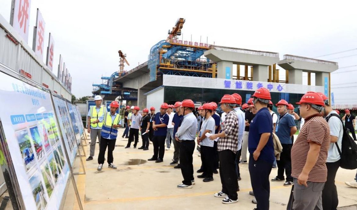 观摩现场通过自平衡悬臂筑桥机工艺实景演示、BIM+GIS数字化管理平台操作、智能张拉与压浆技术展示、桥梁线形自动监测系统讲解、实体质量样板观摩等环节,全方位呈现了项目在桥梁智能建造领域的领先水平和精细化管理能力。尤其在滠水河特大桥采用的自平衡悬臂筑桥机施工工法,引起了与会专家的广泛关注和高度评价。